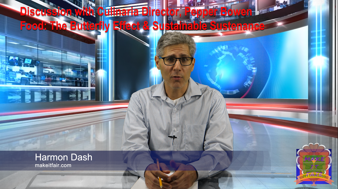 Join the Discussion: Make It Fair's Harmon Dash & Culinaria Director, Pepper Bowen. Food deserts, invasive species, environmental issues and toxins, diet change effects... all are multi-sided issues. Profit and loss, cultural considerations, protecting human and planetary health are just a few food industry factors. For food policy and culture, the "Butterfly Effect" is in full force. Also, not only has decades of marketing convinced many American's to eat against their own self-interest, but the American diet and appetites reach far beyond the dinner table and the scale. One thing is clear, there's no easy fix for businesses nor individuals and no solution which will make everyone happy. However, at this point is it about happiness or sustainability?